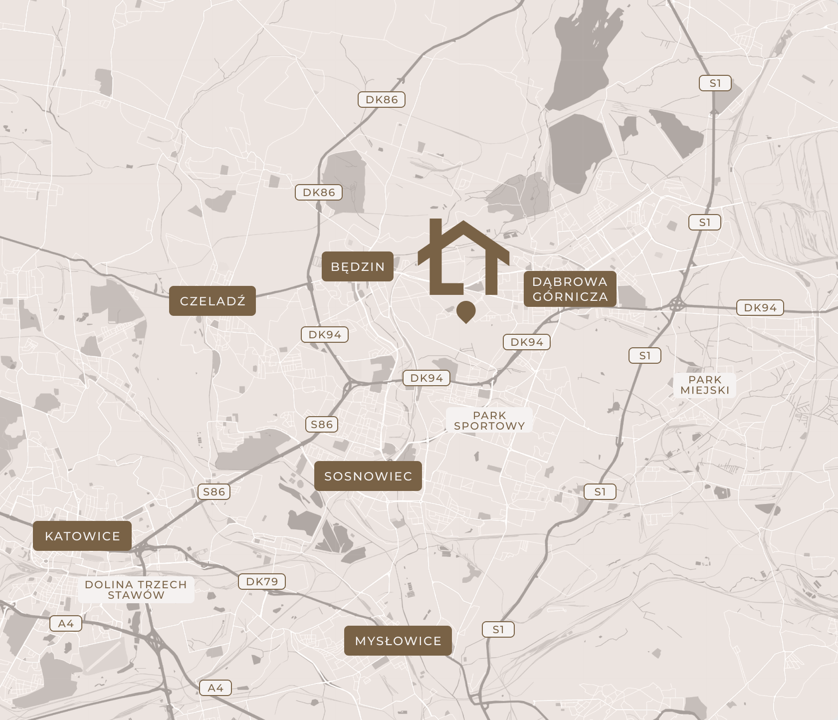 bliskość miast Dąbrowa, Będzin, Sosnowiec, Katowice