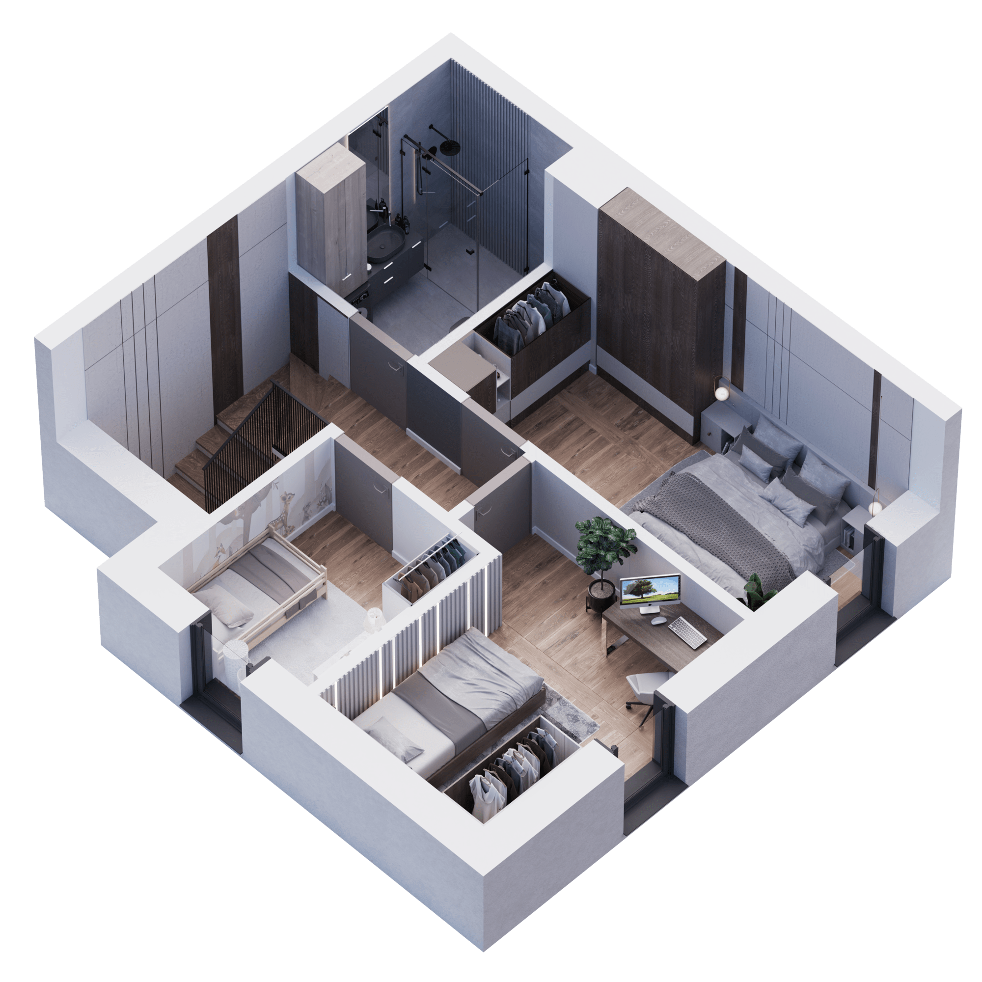 3 pokoje na piętrze,